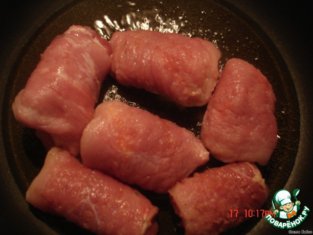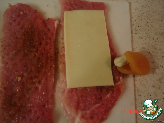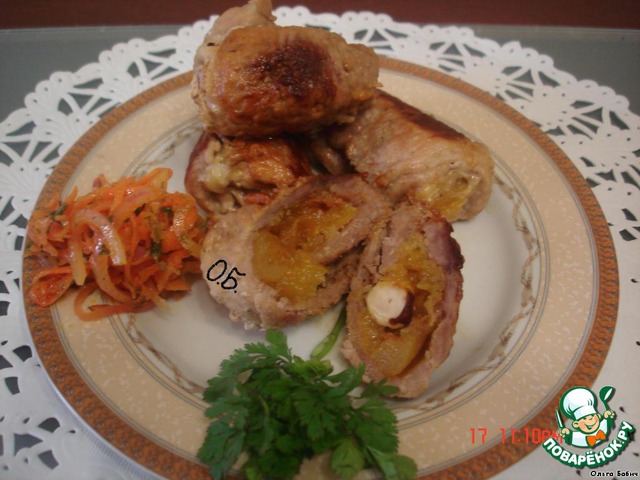 Свиные рулетики с курагой и орехом
