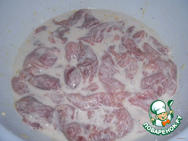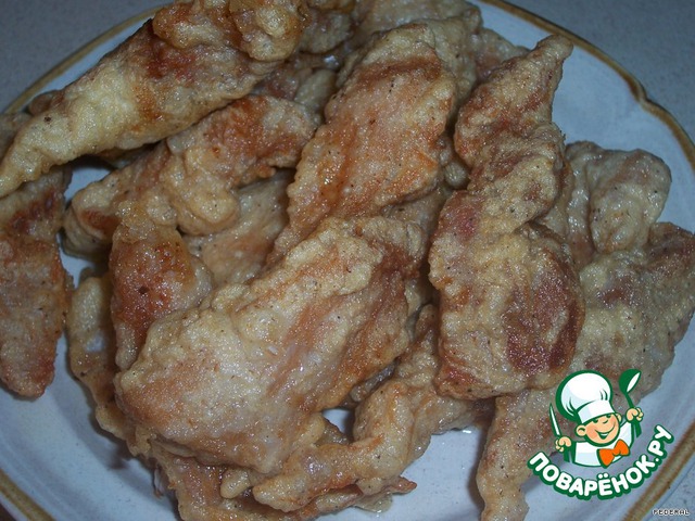 | хороший рецепт для праздничного стола, давно хотела приготовить это мясо, но не знала, как приготовить кляр, на одном форуме подсмотрела, как делать кляр, и вот что получилось. |
