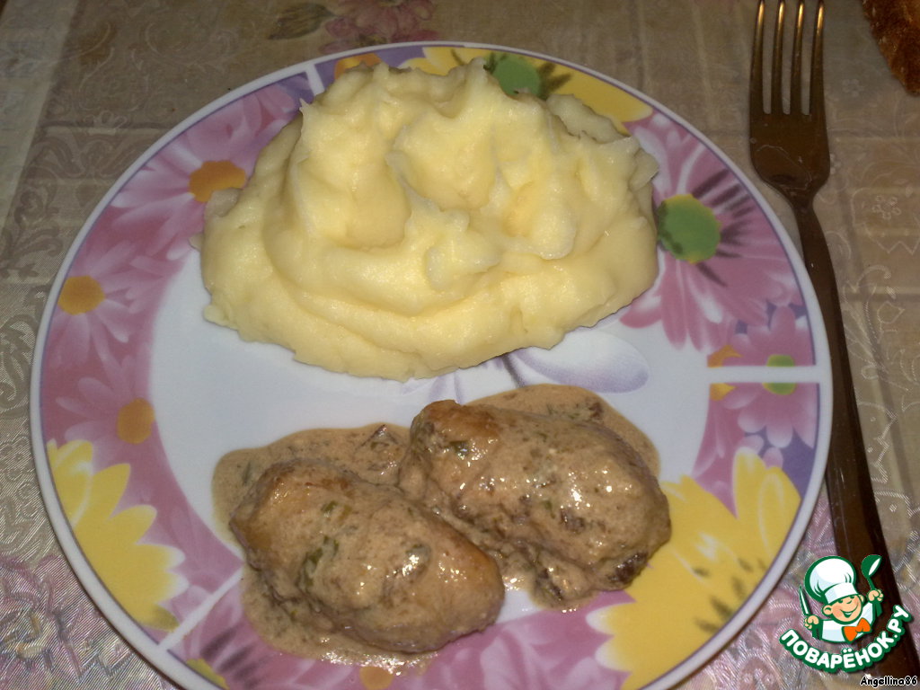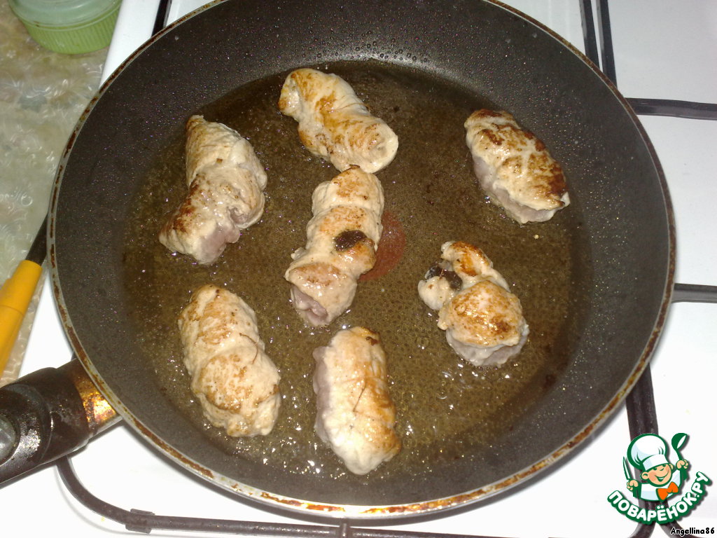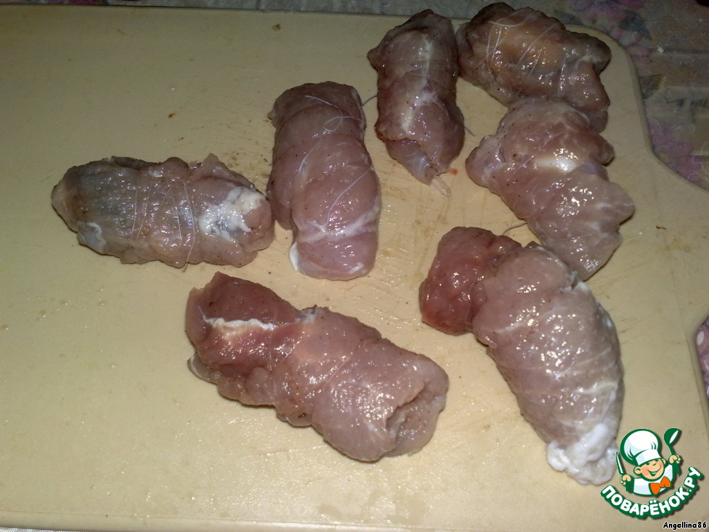 В каждую отбивную завернуть пластинку яблока и немного чернослива.