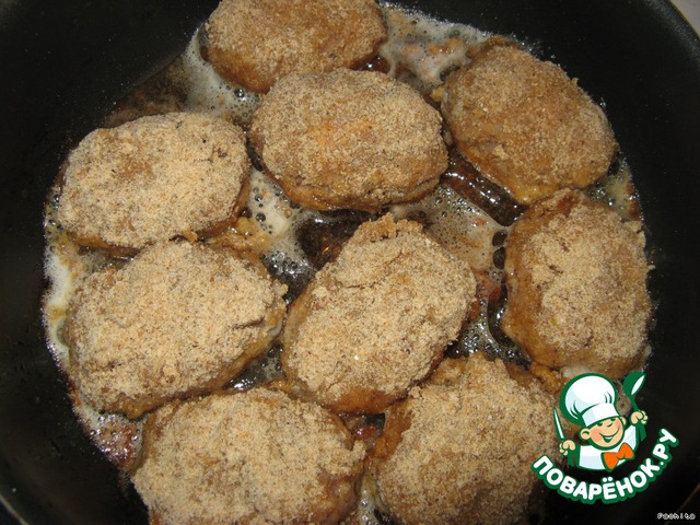 Взбить яйца с солью. Каждую котлетку обмакнуть в яйцо, затем обвалять в панировочных сухарях и обжарить на среднем огне с двух сторон.