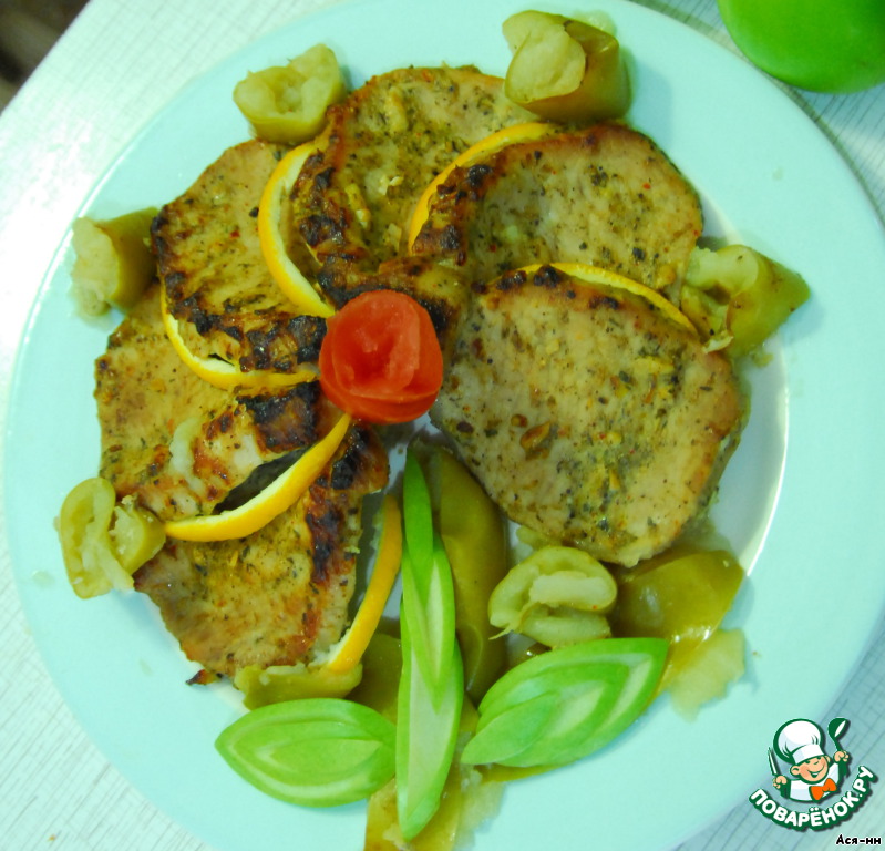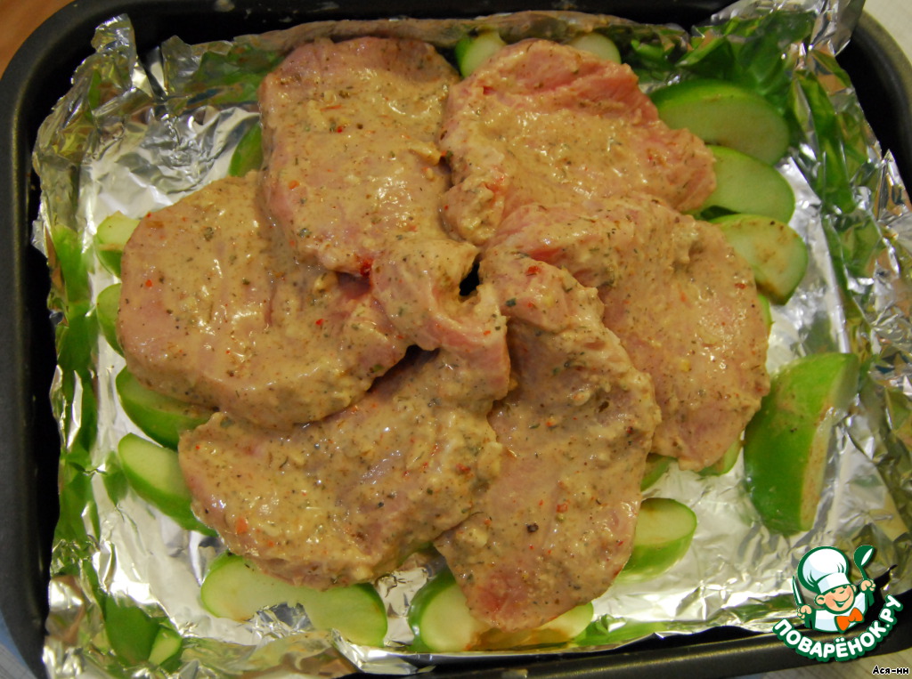 | Маринованная свинина запеченная с яблоками. Мясо получается нежное. |