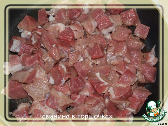 Обжариваем свинину на сильном огне до образования золотистой корочки. Если свинина постная, добавьте подсолнечное масло.