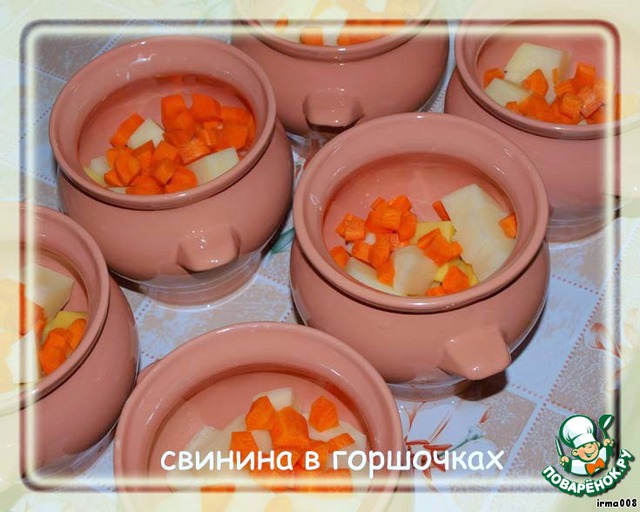 Заполняем горшочки на 2/3 овощами, солим и приправляем специями по вкусу, в каждый горшочек добавим по 50 мл воды.