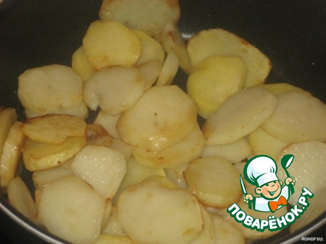 Картофель обжаривать в растительном масле до золотистого цвета.