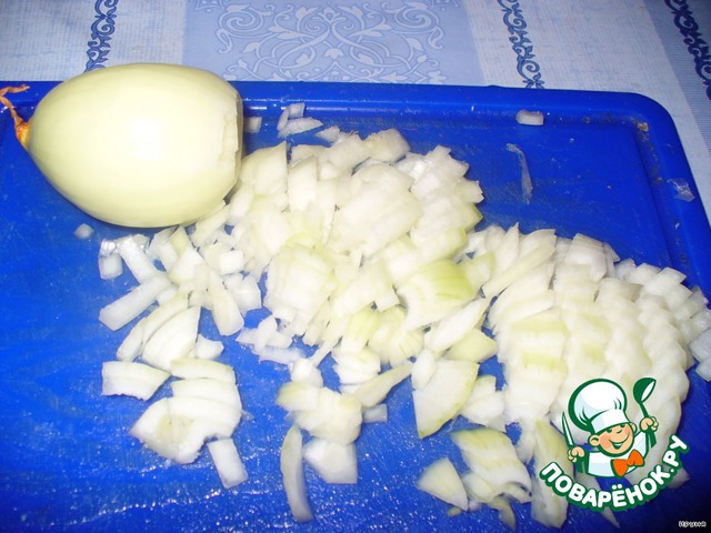 Обжарить лук на растительном масле до прозрачности и легкого золотистого цвета.