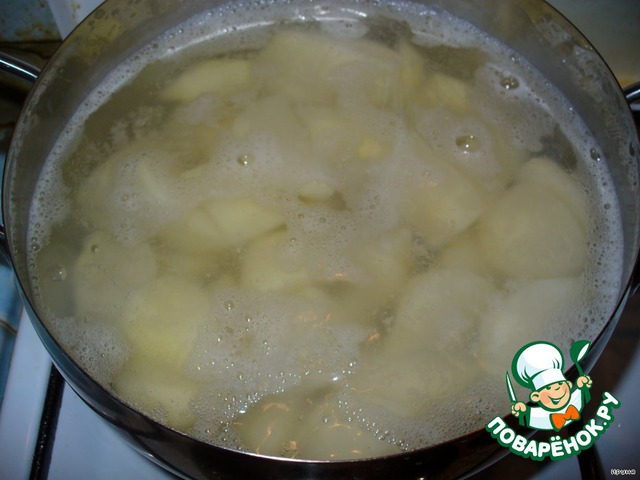 Картошку очистить, нарезать достаточно крупными ломтиками и варить 30 минут.