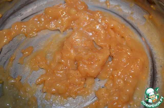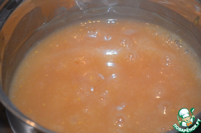 Помешивая венчиком постепенно влить яблочный сок и уварить до загустения.