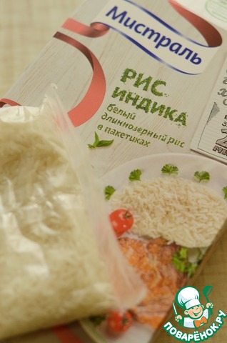 1. Пакетики риса опустить в кипящую, подсоленную воду и готовить согласно инструкции на упаковке.