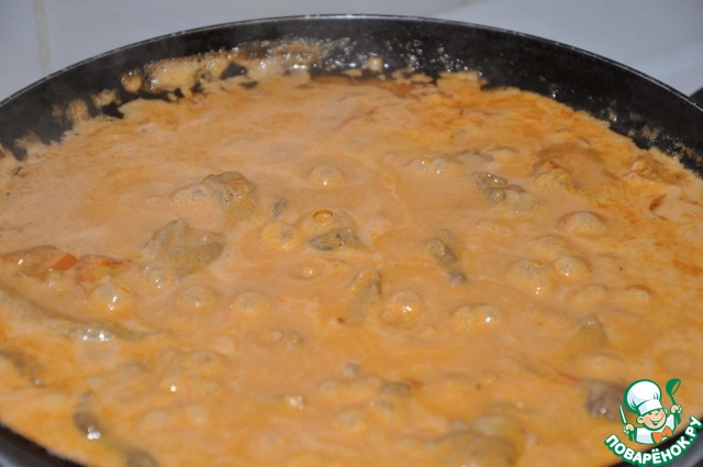Полученным соусом заливаем мясо и доводим до кипения.