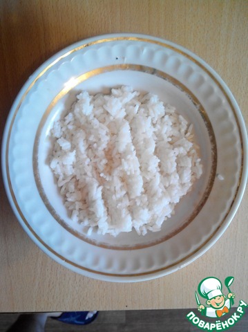 Полуготовый рис добавляем к фаршу, луку и вымешиваем, добавляем воду (не переборщить), соль/перец/специи по вкусу.