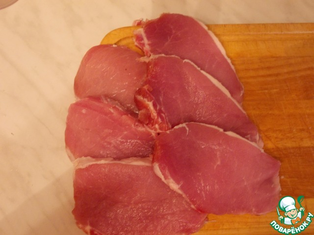 Мясо моем, нарезаем на куски толщиной примерно 1,5 см.