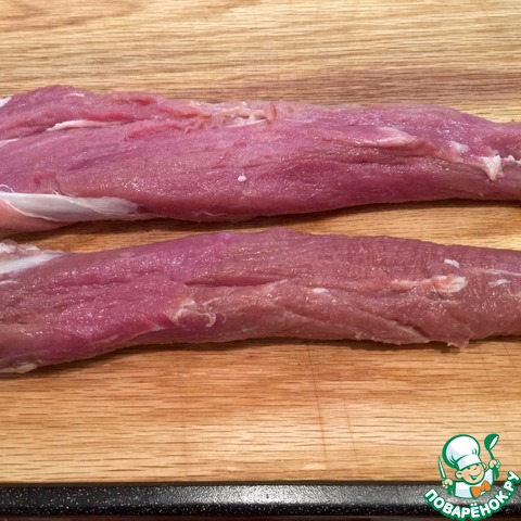 Что касается мяса: берем полендвички. У меня вот такие тоненькие. Это самая мягкая и нежная часть свинины. Если Вы уверены в нежности своего мяса-можете взять свое.