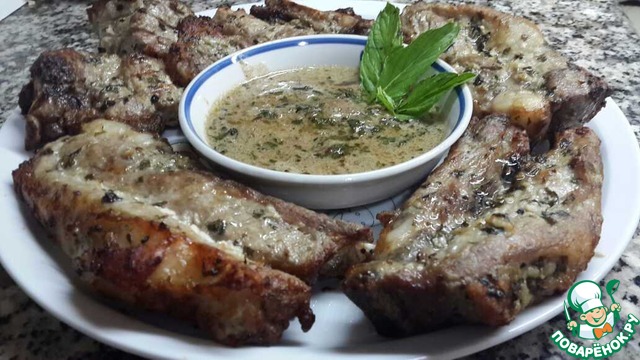 Свинина в маринаде и мятный соус к ней