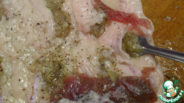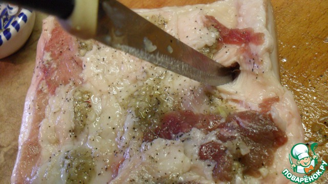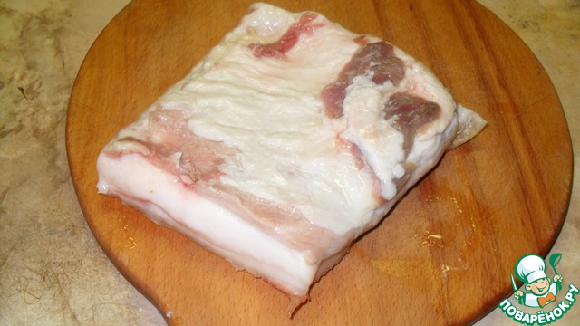 Кусок подчеревки хорошо промыть, обмакнуть бумажным полотенцем.