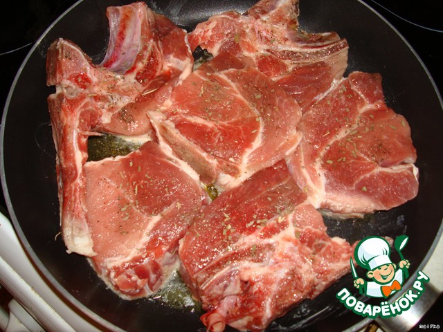 Из куска свинины нарезать порционные куски толщиной 3-4 см. Мясо не отбивать.