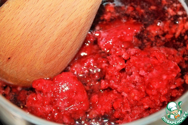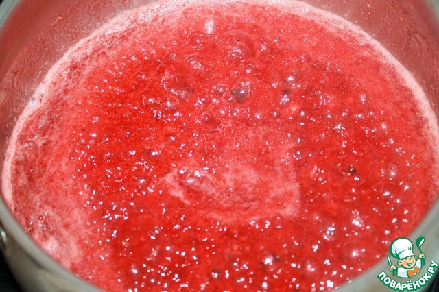 Выкладываем клубничное пюре. Добавляем сахар, немного соли и обязательно перец.