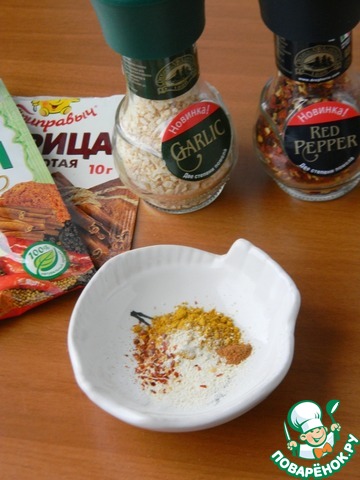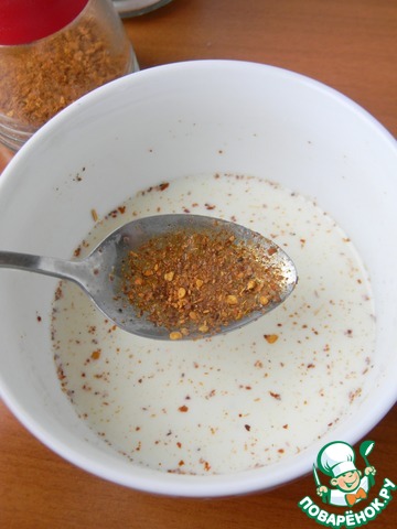 И сухой, молотый перец чили. Здесь регулируйте по вкусу, если не любите сильно остро, то насыпайте меньшее количество.