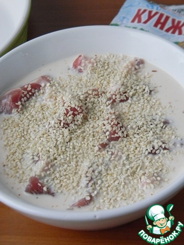 Поставить маринад на 30 секунд в микроволновую печь, чтобы мед подтаял и легко перемешался со сливками. Залить маринадом мясо и убрать в холодильник на несколько часов (у меня мариновалось 2 часа).