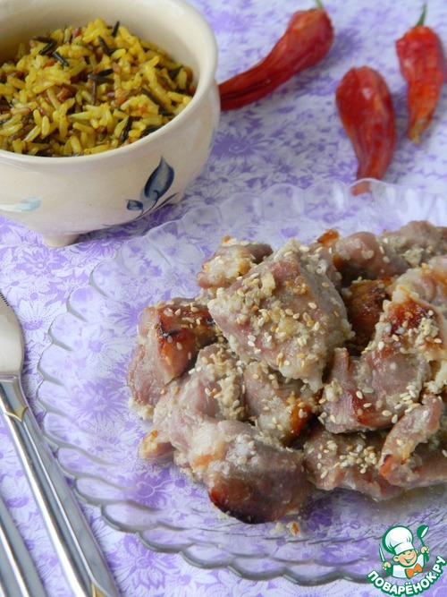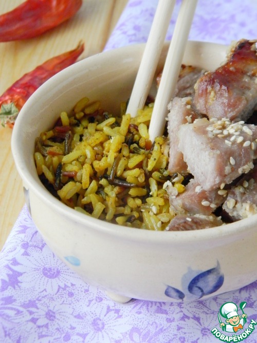 | Нежное, остро-сладкое мясо с ароматным, пряным гарниром из рисового микса. |