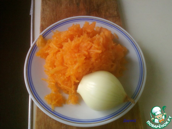Теперь займемся тыквой и луком. Тыкву натереть на терке.