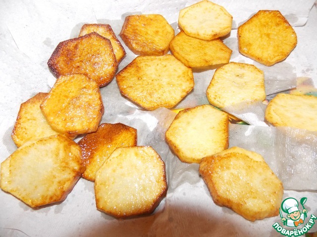 Затем выкладываем картофель на бумагу так что бы все лишнее масло стекло...