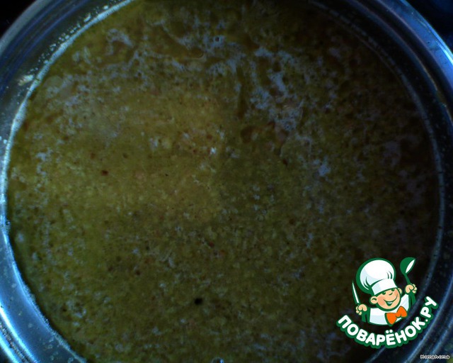 Раскрошить в смесь кубик. Тщательно перемешать. И влить всю воду.