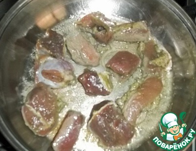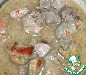 Мясо слегка поджарилось, добавить 1 стакан горячего мясного или овощного бульона.