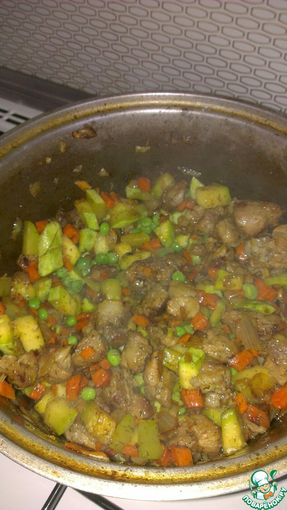 4) Затем добавляем кабачки кубиками.