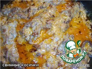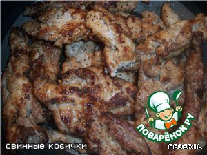 Потом косички обжарить с двух сторон, положить в сотейник.