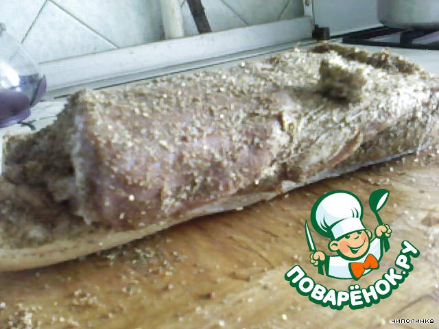 Перемешиваем все специи и натираем подчерёвку. Оставляем пропитаться на 1 - 1,5 часа.