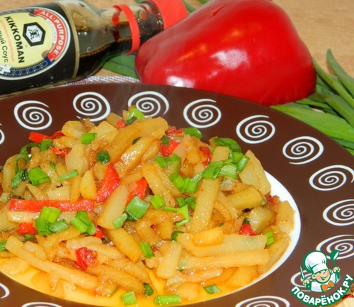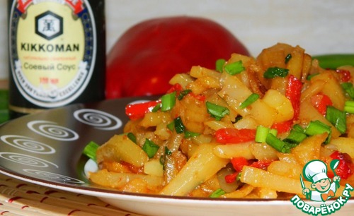 | Казалось бы обычная жареная картошка с мясом, но стоит добавить овощи, зелень и немного соевого соуса для аромата, как вкус начинает играть по-новому. Скажу честно - попробовала так разнообразить обычный ужин и нисколечко не пожалела... домашние попросили добавки. Жареная картошка вкусна сама по себе, поэтому мяса добавляю совсем немного, только для аромата. Количество ингредиентов условное... ориентируйтесь по своим едокам. |