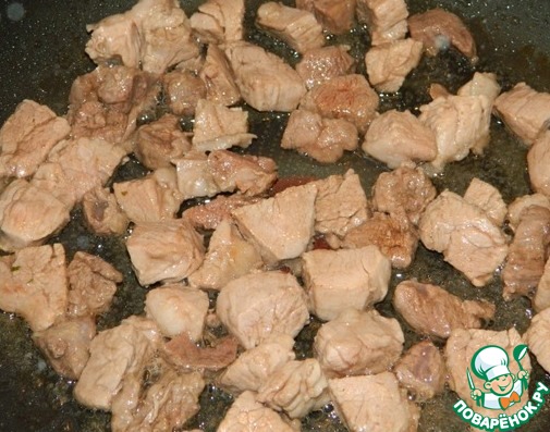 Мясо нарезать мелкими кусочками и обжарить.
