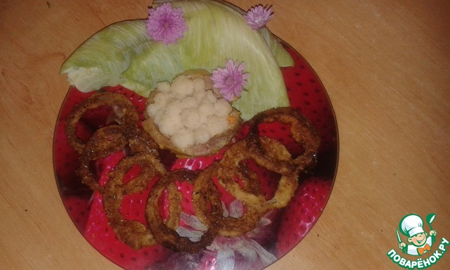Колечки обжариваем на растительном масле с двух сторон до золотистого цвета.