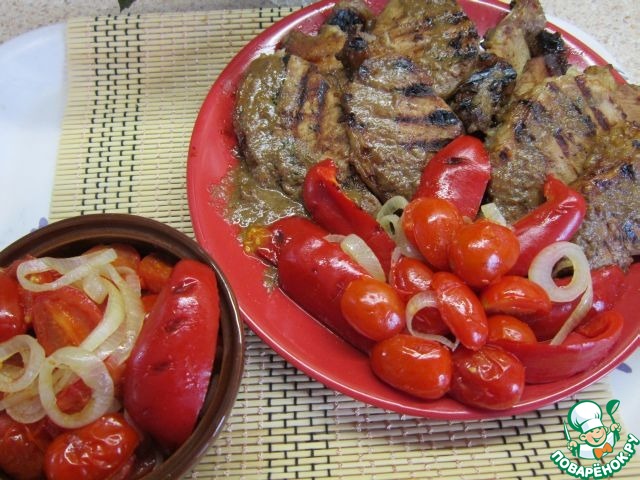 Ну и конечно горячий салат из овощей на гриле, присоленных и спрыснутых лимонным соком.