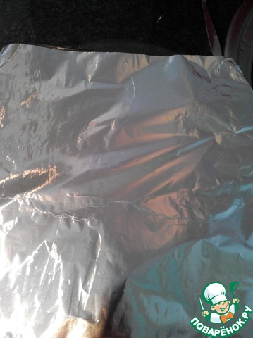Накрываем фольгой и ставим в духовку на 180 град. на полтора часа, затем увеличиваем огонь до 250 град. и сняв фольгу жарим до образования корочки