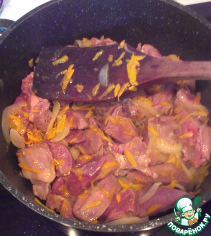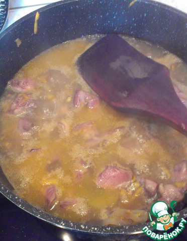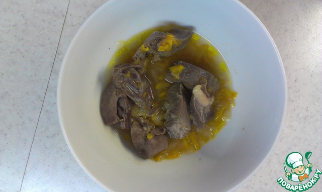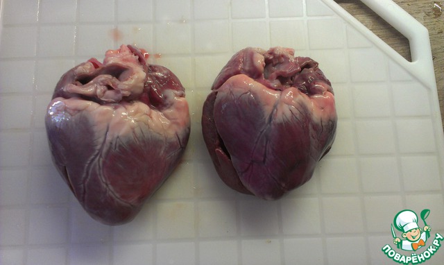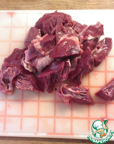 Далее заливаю кипятком, вода должна полностью покрыть сердечки, и тушу до готовности сердца.