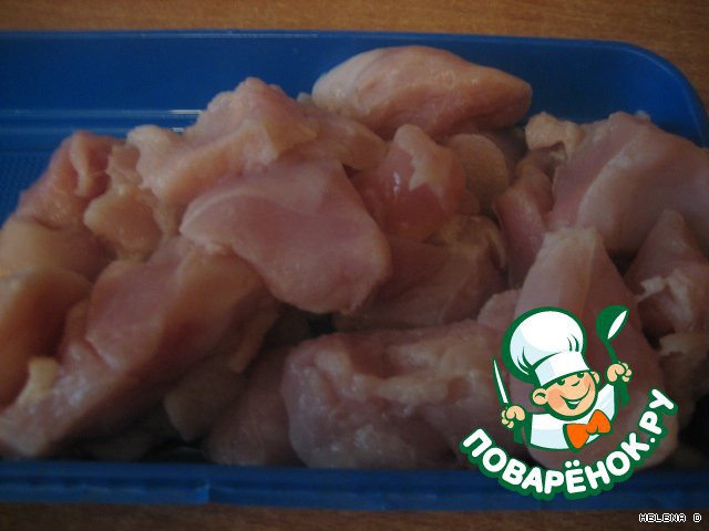 Порежем нашу нежную свининку на кусочки (можно ещё мельче, чем у меня)