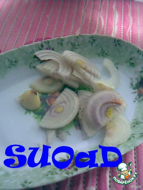 Моем мясо, вымачиваем в воде(30 мин) и нарезаем небольшими кусочками.