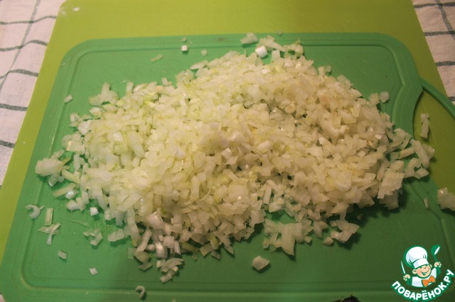 Лук режем мелкими кубиками.