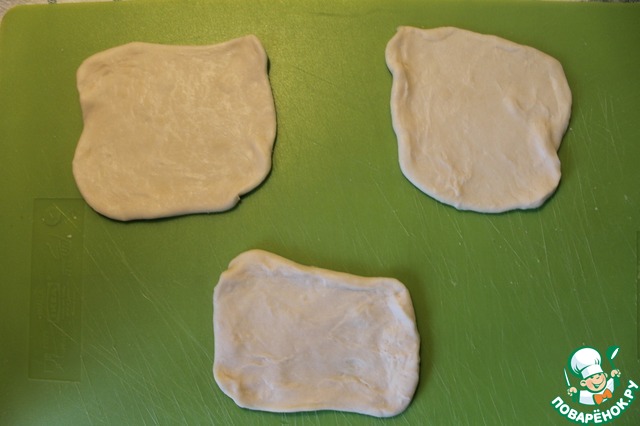 Насколько тонко раскатывать тесто -- дело вкуса, лично я не люблю очень тонкое тесто. При раскатывании стараемся придать лепёшкам квадратную форму.