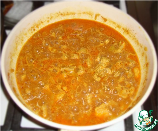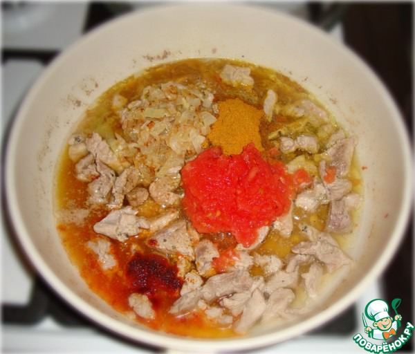 Добавить специи (у меня паприка, перец карри и в процессе решила добавить помидор).
