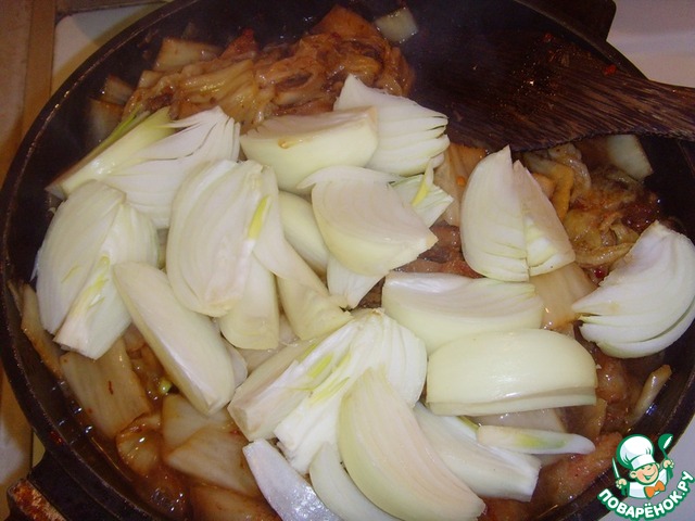 | Всем доброго времени суток! Случилось так, что у меня образовался излишек чимчи, по этому я решил приготовить из неё горячее мясное блюдо - чимчи-поккым. Дословно, в переводе с корейского, "чимчи-поккым" означает "жаренное чимчи". Как бы получается корейский вариант "солянки из квашенной капусты". Очень вкусно и необычно. |