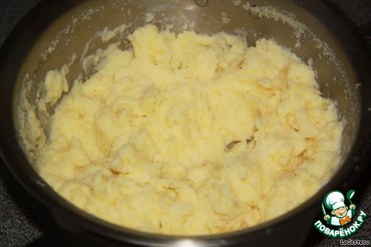 Замесить нежной картофельное пюре. Оно получается сладковатым на вкус. Очень вкусное само по себе! :)