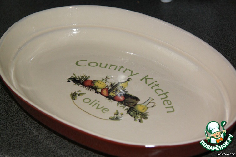 Возьмем огнеупорную форму для запекания. Этой красотой я обязана Дашуле (skyfuntik)! Дорогая, еще раз спасибо за такой восхитительный подарок.