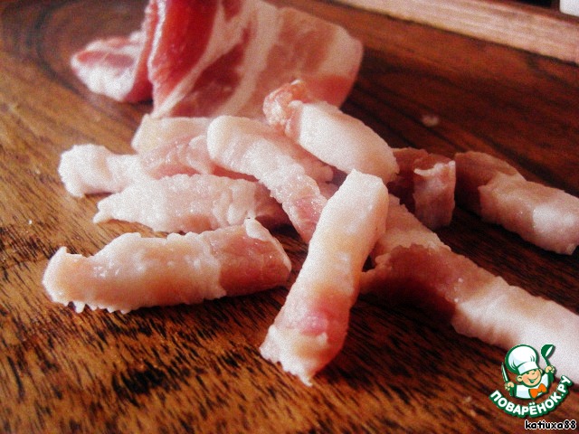 Сало нарезать соломкой и обжарить на небольшом количестве масла.