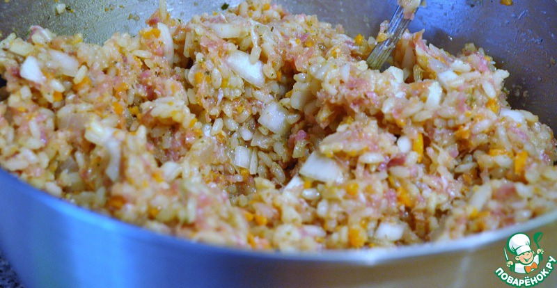 Вместе с мясом пропустила через мясорубку морковь, а лук нарезала мелко и тоже добавила в фарш.