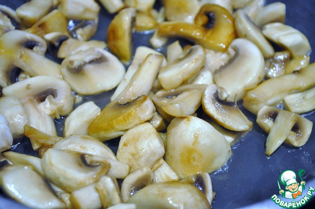 Грибы крупно режем и обжарим.