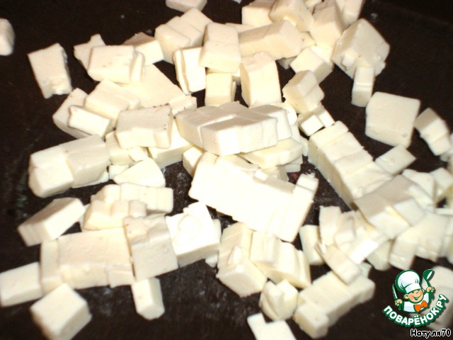 Сырок нарезать маленькими кубиками. Положить в фарш и еще раз тщательно перемешать.
