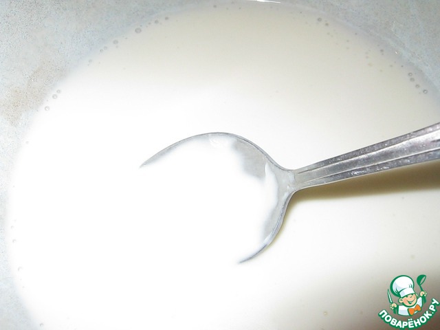 Пока мясо тушится, займёмся соусом. Крахмал разводим с 3 ст. л. холодной воды. Ставим кастрюльку на небольшой огонь, добавляем сливки, помешиваем. Как только масса нагреется, добавляем сметану. Прогреваем при постоянном помешивании 2 минуты.