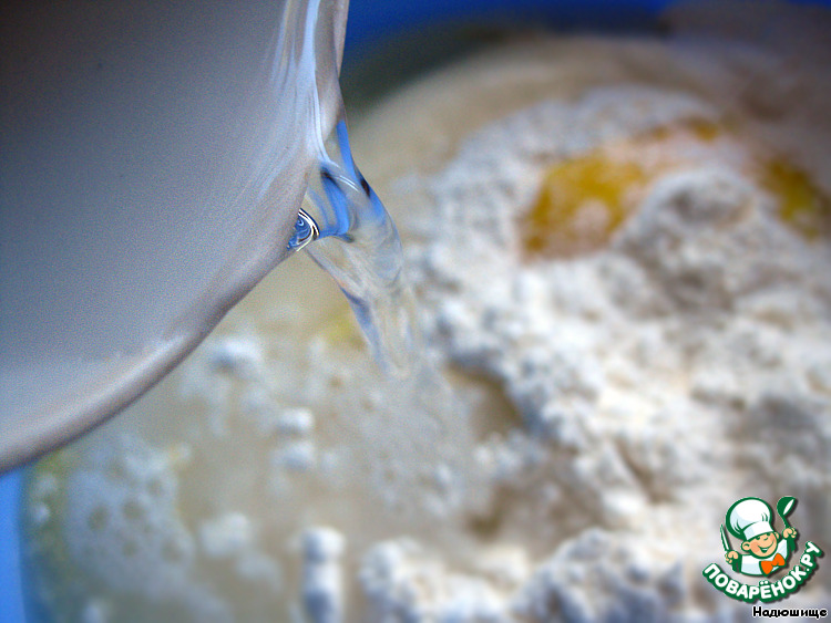 Готовим тесто как на вареники: в глубокую посуду всыпаем муку,